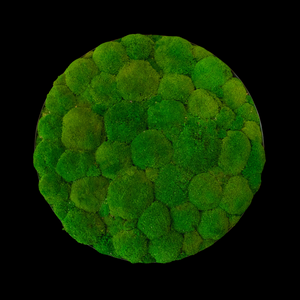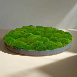A well-preserved moss ball grass using stainless steel round flat vase.