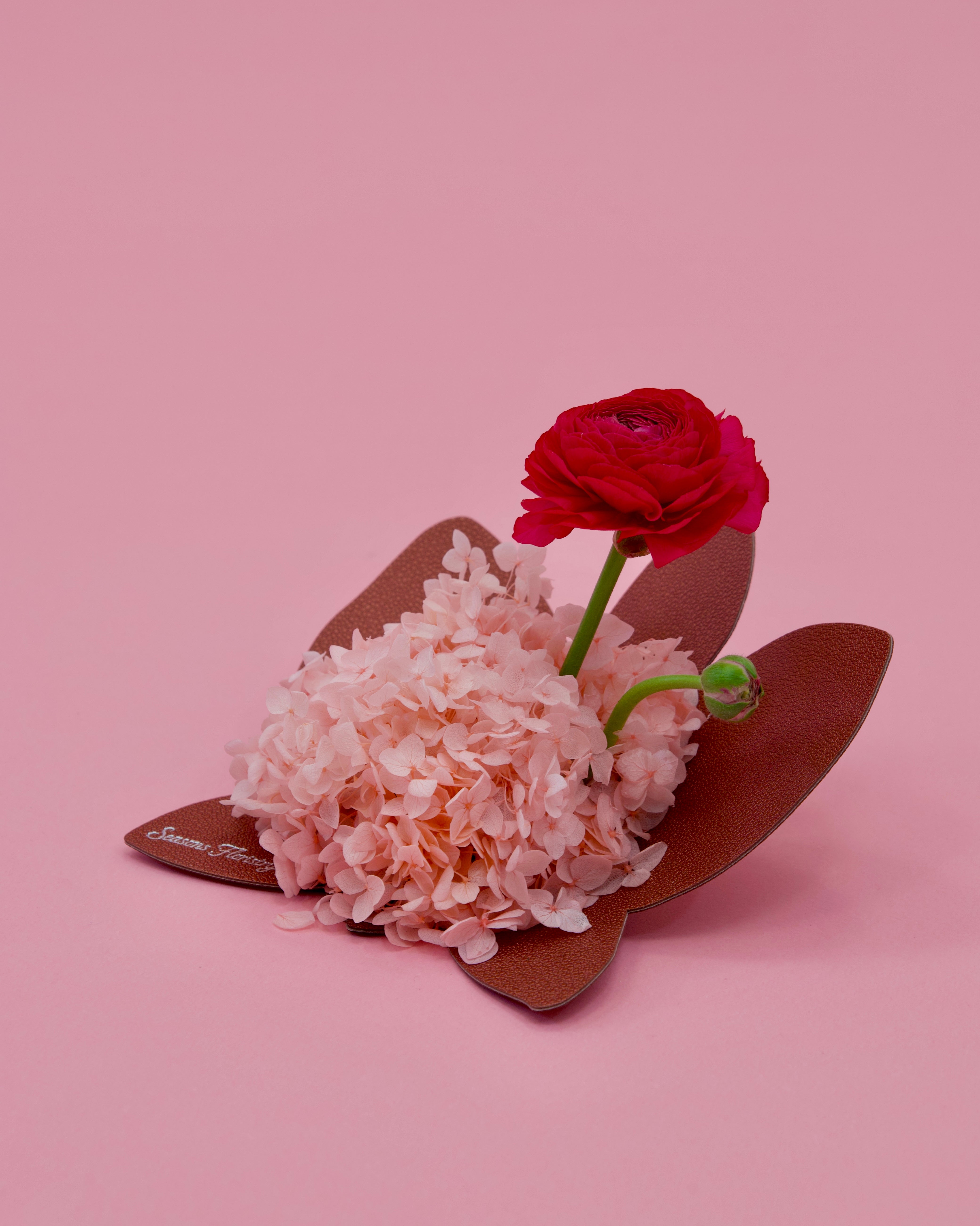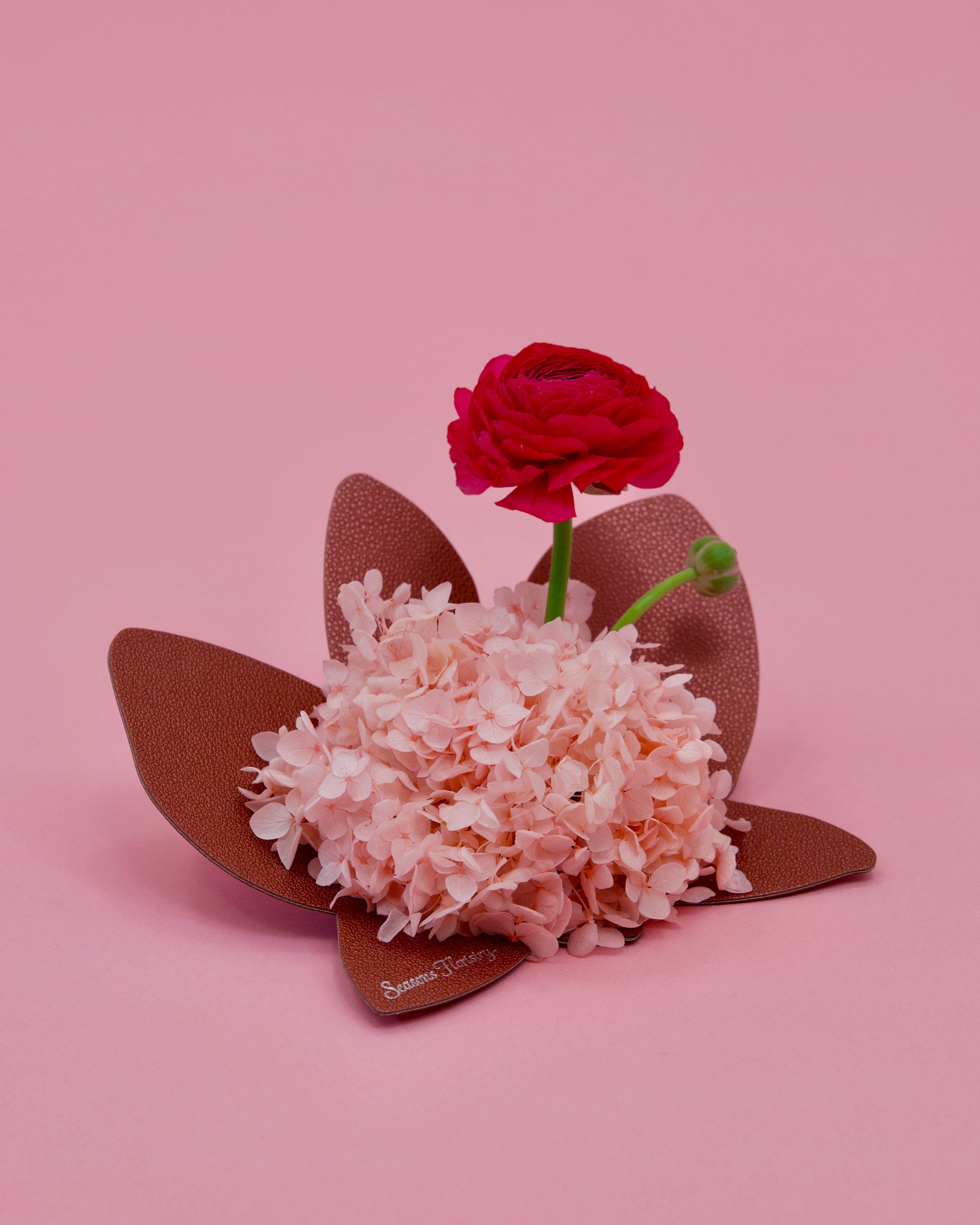 Flowers used: Dried hydrangea with Fresh Ranunculus Flower