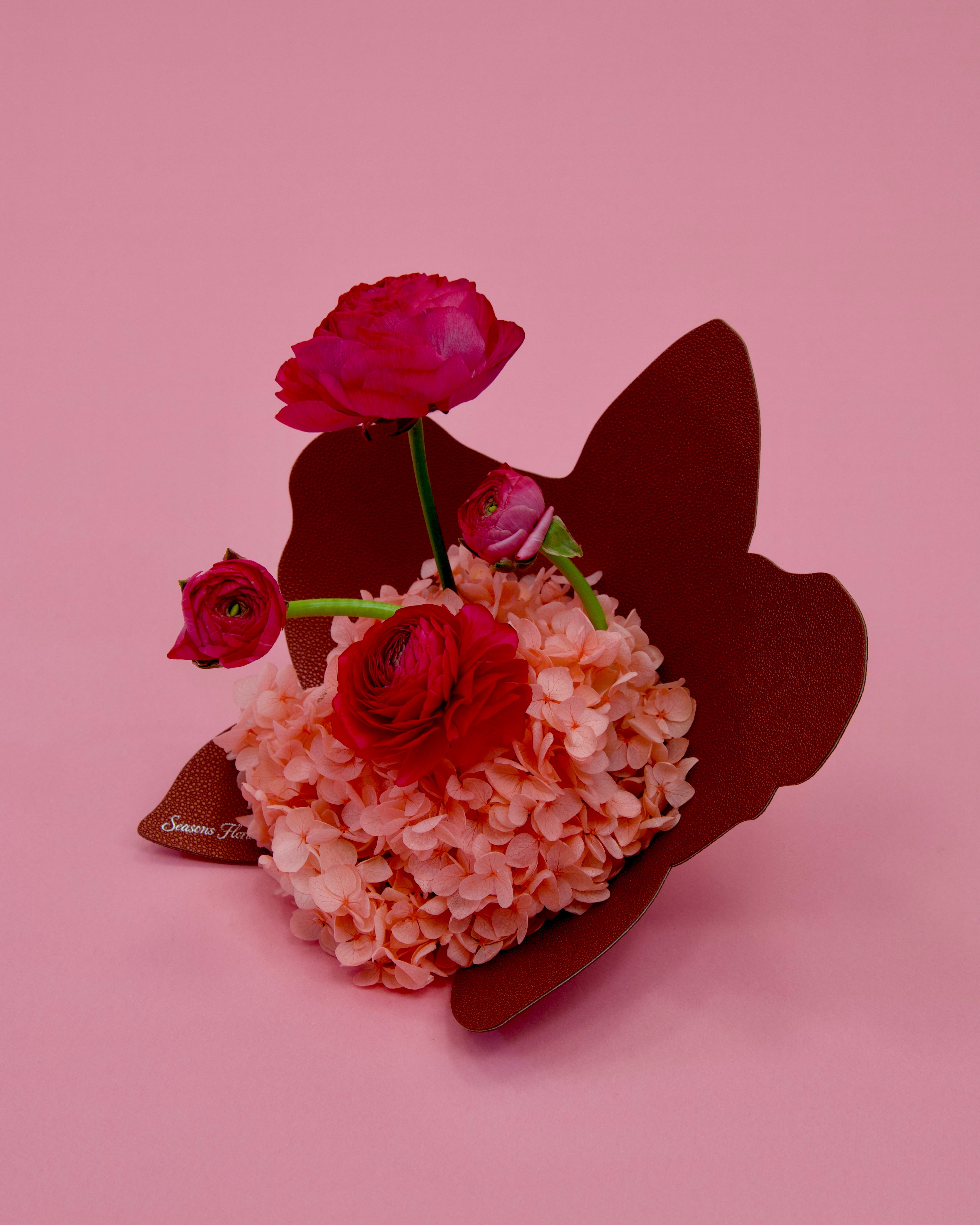 Flowers used: Dried hydrangea with Fresh Ranunculus Flower