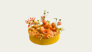 An Eid fruit tray with flowers is a festive, artfully crafted centerpiece that blends vibrant fruit with floral elegance.