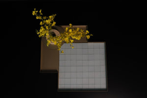 Square Shape Metal Tray with Wood and Flowers