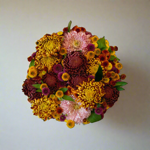 We can get over of this stunning lotus inspired arrangement using different varieties of Chrysanthemums.